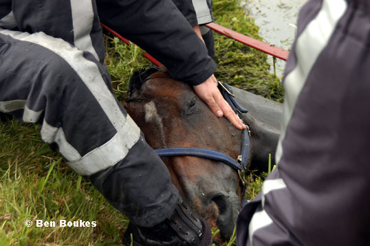 Een paard in de sloot aan de Meer en Geerweg in Leidschendam