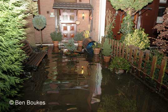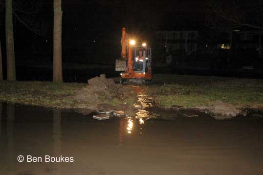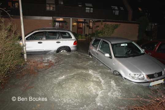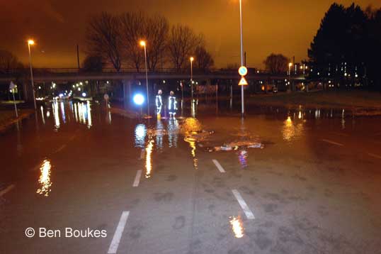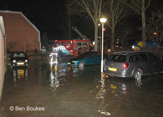 Wateroverlast op de Muzieklaan door een gesprongen hoofdwaterleiding.